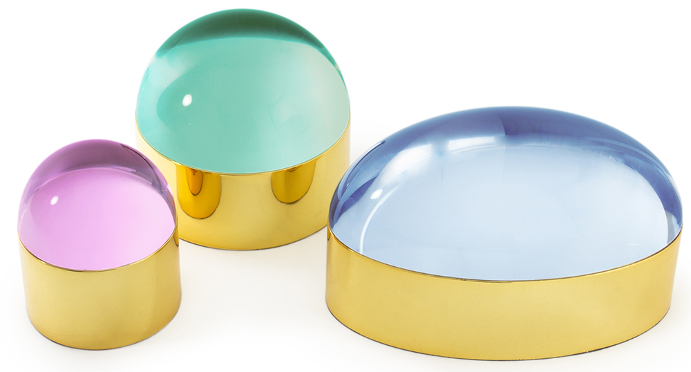 ROW 1: Dora Maar condiment bowl €59, Carnaby Zebra stacking dish, gold €39, Globo boxes €198/€298/€398 and Bel Air mini scoop vases yellow, turquoise €89.