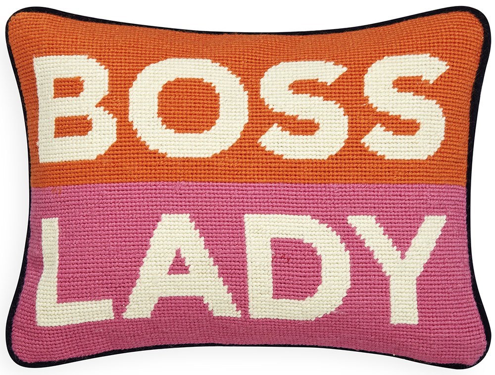 Row 2: Boss Lady needlepoint pillow €119, Futura Bullseye vase €159, Holiday Hearth candle €45, Acrylic pills € 98/€169/€269.