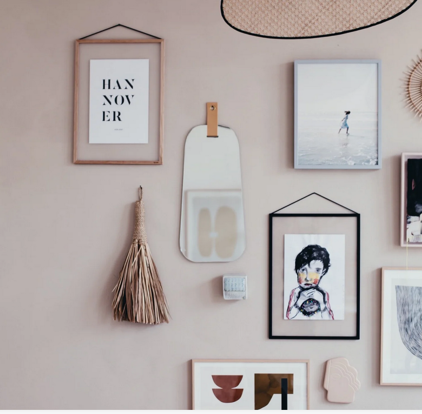 I'm not that bold with mixing frame styles, but perhaps you are. I like to stick to a few colors (white and natural wood) then throw in a few colored frames or black or something with a clean slim gold frame, as an accent. You do you. Maybe you want all black frames or only white. Or you want all of the frames to be in a different color of the rainbow, or only pink. But whatever you decide, decide! Also decide on mattes. I believe that all mattes should be the same color on gallery style walls just for the sake of unifying the overall arrangement, especially if you are mixing and matching frame colors, but then you'll sometimes see a wall that breaks every design rule and it works beautifully. Yet, I tend to think those walls are done by the extremely stylish out there who effortlessly turn horses into unicorns, so who knows - if you have that magic - do it!