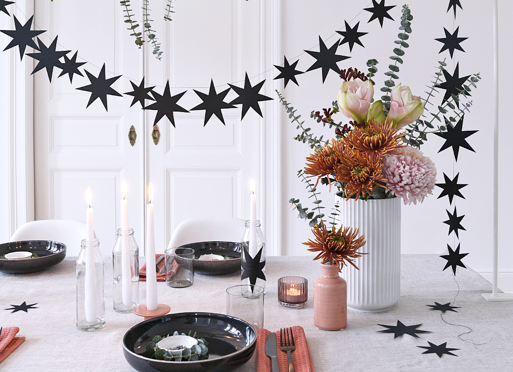 It also made me happy to decorate with Eucalyptus again. And if you have a look around you will notice Eucalyptus is still the darling of stylists at this time of the year! I fixed several branches loosely onto my table clamp (you will find more information about this gorgeous tool here).