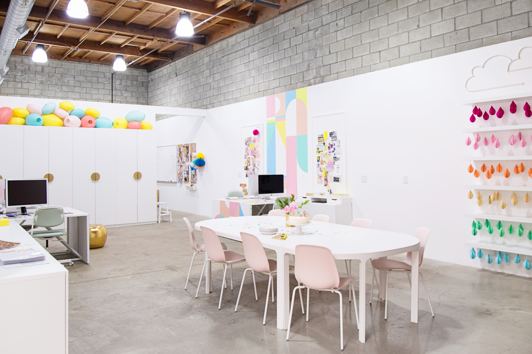 We love the new(ish) Oh Joy! studio because we have tons of space as compared to our old studio. It’s large and open but has clearly defined sections to maximize use for everyone’s work. Once we established various sections of the office, it made sense for me to have an "executive" office since I am in meetings and phone calls a lot and for the styling/craft team to have room in the back where they could work on messier projects and have easy access their everyday supplies. There is one larger space where more than half of the Oh Joy! team (design, e-commerce, social media, and admin) spends their day. We also have common areas like our kitchen and dining table that we use daily